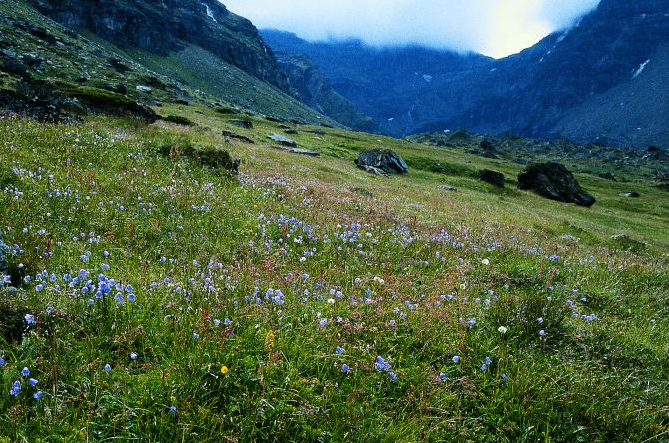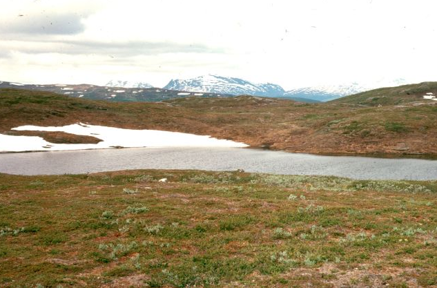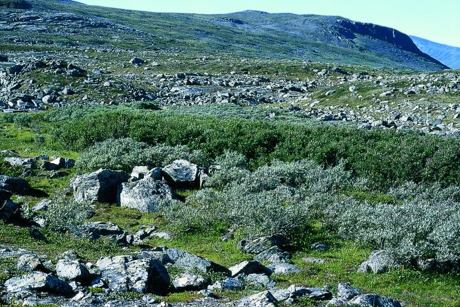 Complex consisting of dwarf shrubs with Empetrum hermaphroditum, in more wind protected locations with Betula nana, on wind exposed hilltops with Loiseleuria procumbens and Diapensia lapponica. At higher locations grasslands (Nardo-Caricion bigelowii) dominate. In moist hollows, willows with tall-forbs appear.