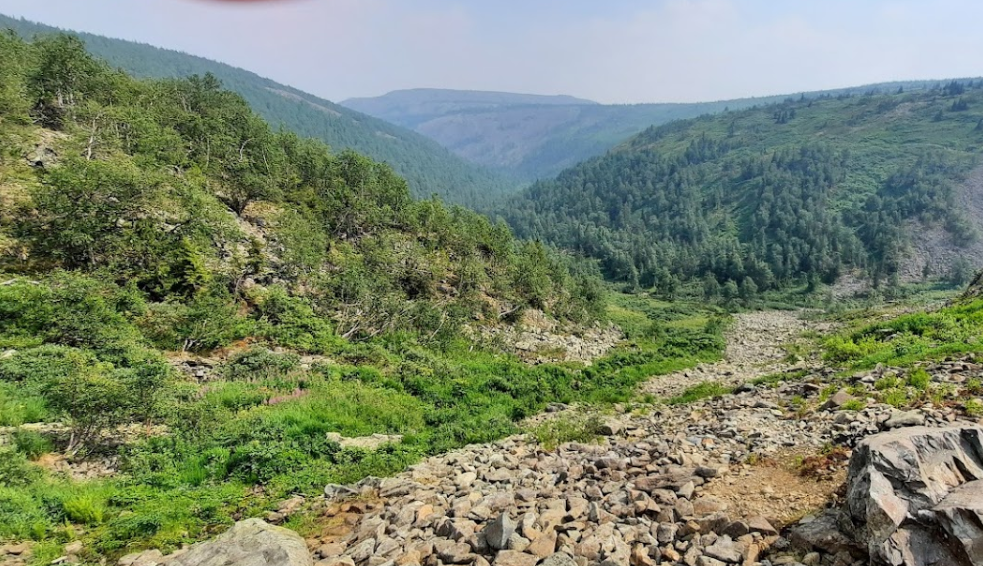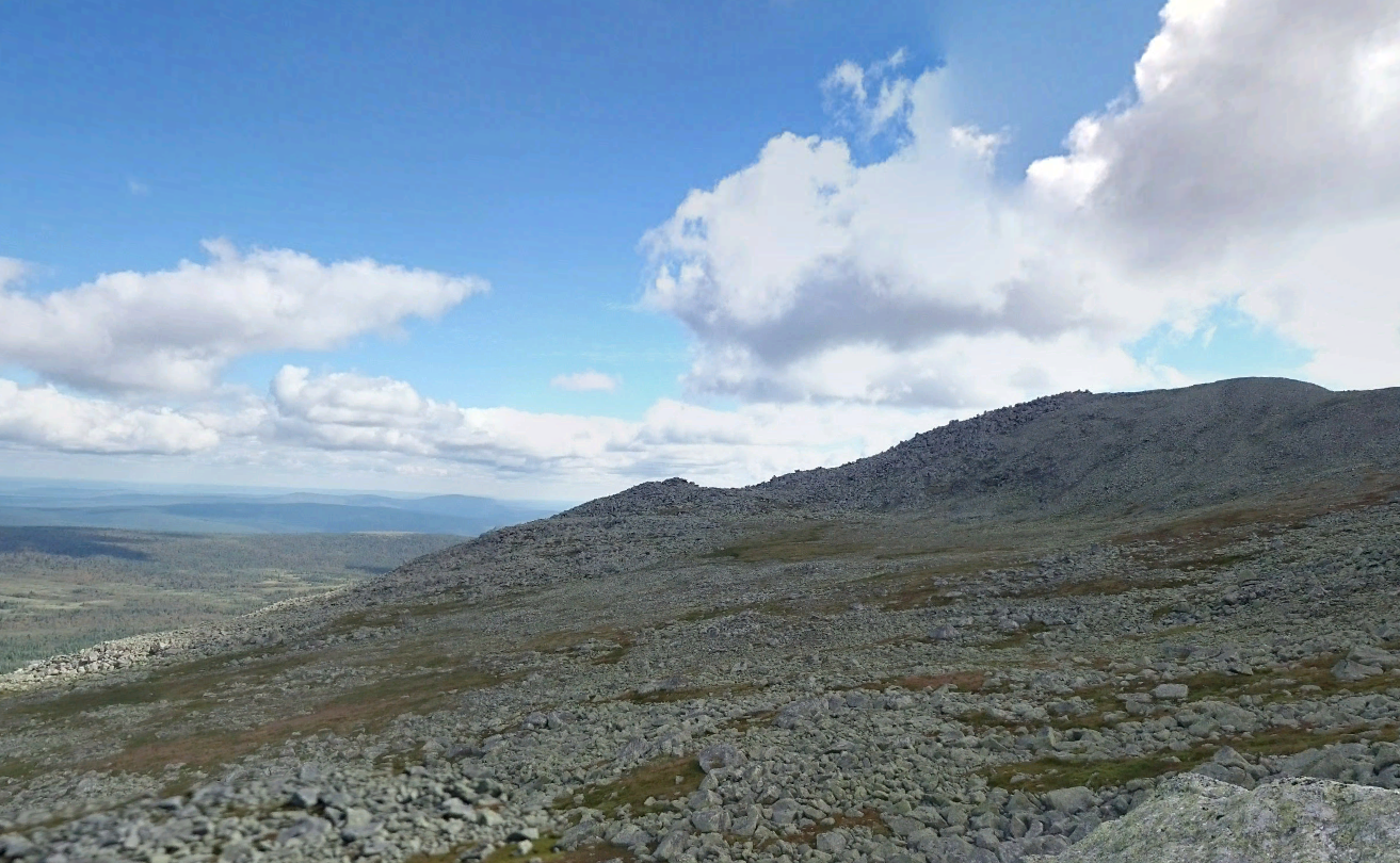 Three-layered mountain spruce as well as birch forests at the upper tree line with scattered Larix sibirica, Abies sibirica; locally larch forests. The stands reach 4-6 m, and occasionally 12 m in height; numerous trees feature wind-stunted forms and tree-top desiccation. The herb layer is dwarf shrub-rich. The stands with evergreen conifers (Picea obovata, Abies sibirica) are relatively dense (60-80 % cover). They contain numerous boreal forest species (Vaccinium myrtillus, Linnaea borealis, Trientalis europaea) and a well-developed moss layer. The open birch and larch forests reach 20-30 % coverage and feature many meadow and mountain tundra plants in the herb layer as well as a weakly developed moss layer.