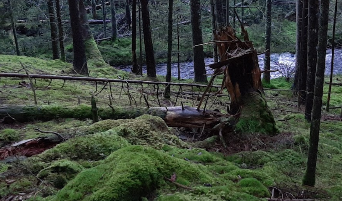 Picea abies (Norway Spruce), locally admixed Pinus sylvestris (Scots Pine), Betula pendula (Silver Birch), Betula pubescens s. L. (Downy Birch), Populus tremula (European Aspen), Quercus robur (Common Oak);