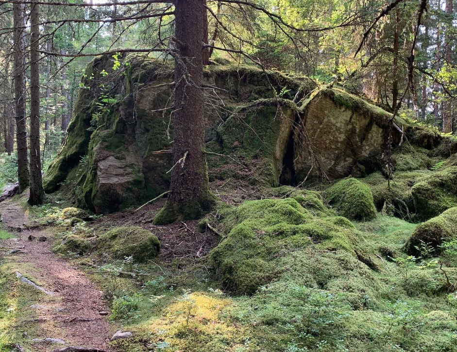 Vegetation mosaic conditioned by a mobile relief and various site types: On deep and relatively nutrient-rich sites there are spruce forests with pedunculate oak in the understorey (cf. D8), while oak and pine forests occur on acid-soil over shallow and rocky sites (cf.F8 and D46, D54). The main units are meso-eutraphent spruce forests and oligo-mesotraphent oak forests. spruce forests with dominating Picea abies in the tree layer, and local additions of Betula pendula, Populus tremula, Pinus sylvestris as well as Quercus robur in the understorey. Herb layer (up to 90 % coverage) with dwarf shrubs and herbs. The moss layer is usually well developed (up to 90 % coverage).