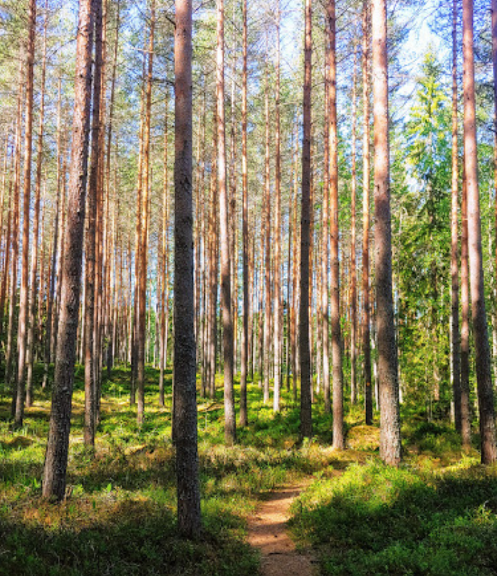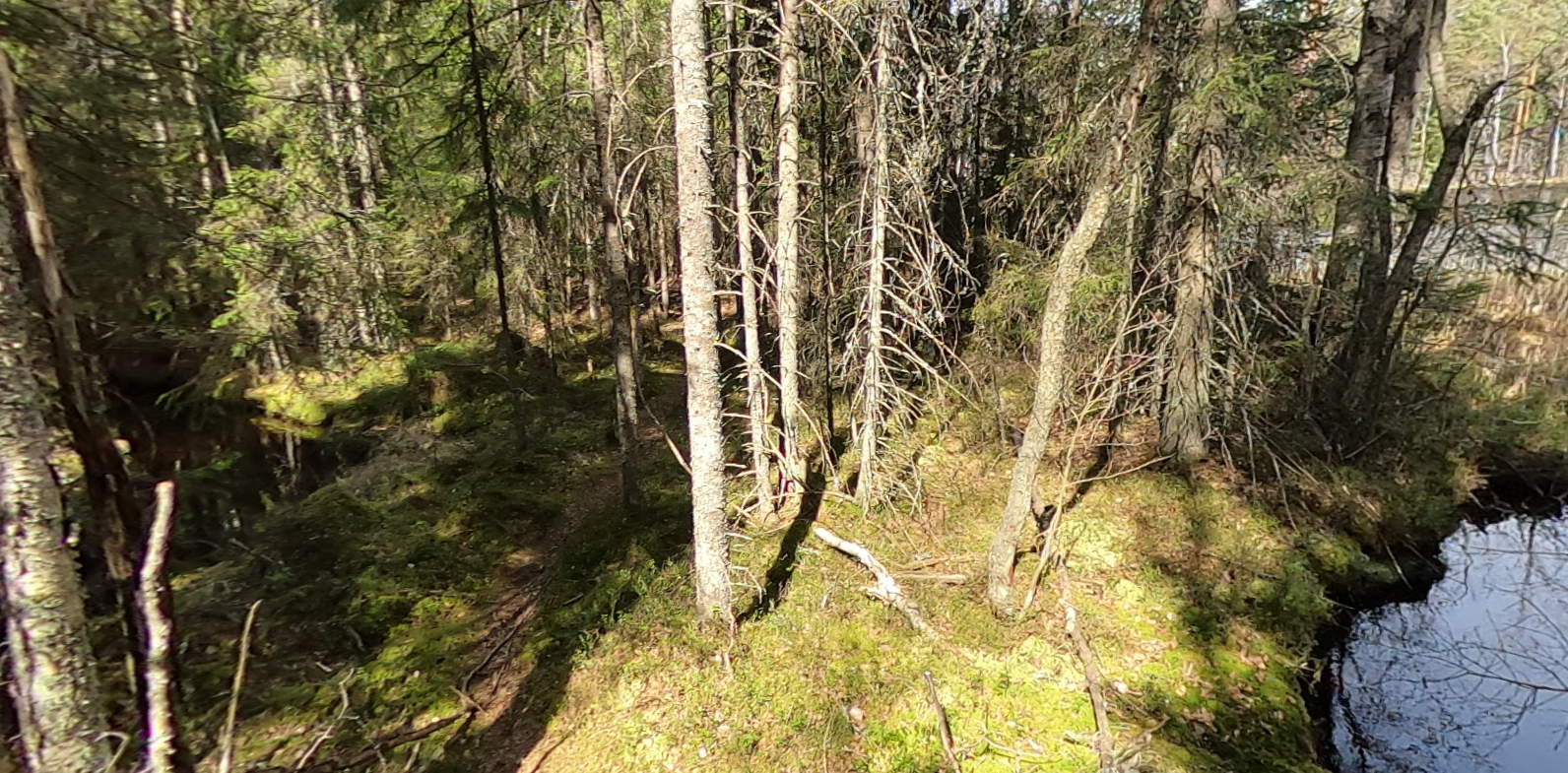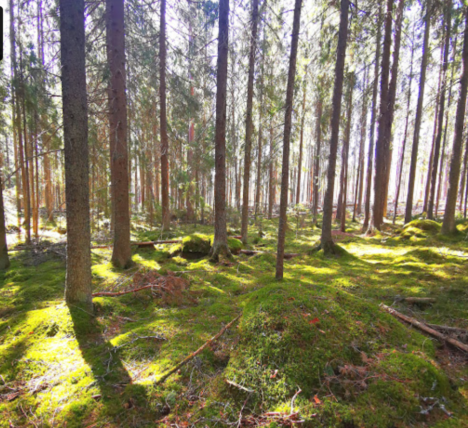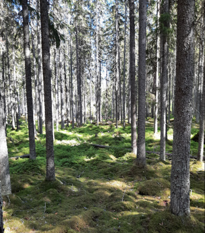 Fennoscandian moss-rich spruce forests (Picea abies) with dwarf shrubs and herbaceous plants (Vaccinium myrtillus, Calamagrostis arundinacea, Luzula pilosa, Maianthemum bifolium, Trientalis europaea, Hylocomium splendens, Pleurozium schreberi), partly with Anemone nemorosa, Ribes alpinum, locally alternating with pine and spruce mires