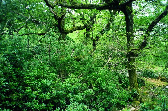 Ilex aquifolium (Holly), Sorbus aucuparia (Rowan), locally Rhododendron ponticum (introduced) (wild_shrub)
