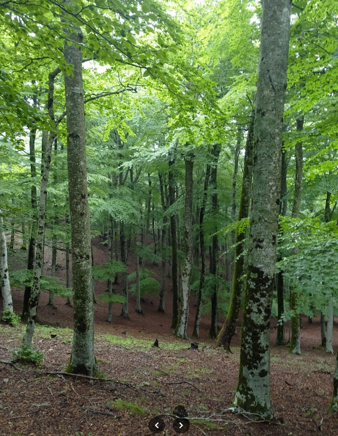 Fagus sylvatica dominating (Common Beech), locally with Abies alba (Silver Fir)