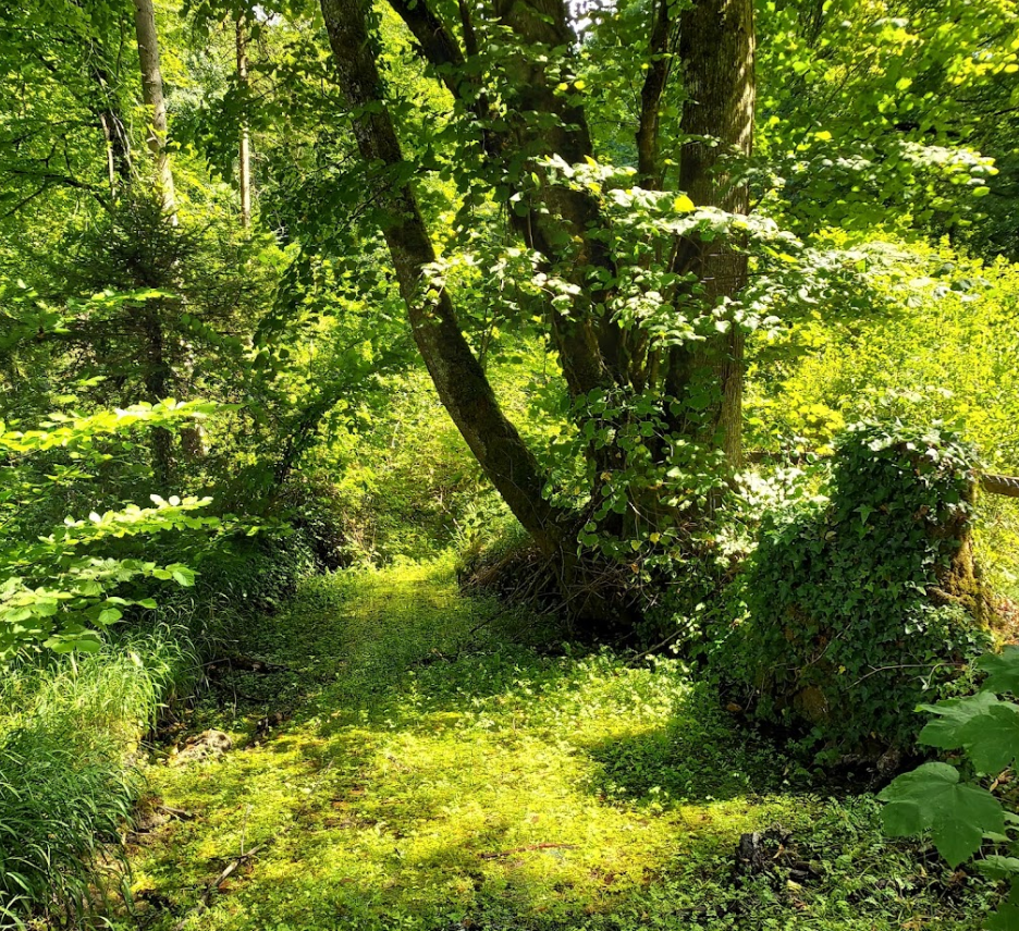 Groundcover (in clumps): lush_grass, sweet_woodruff, fern_1, bracken, fern, wild_parsley, autumnal_dwarf_birch, meadow_fescue, woodland_sedge, dogs_mercury, oxeye_daisy, green_spurge, lily_of_the_valley, greater_wood_rush, cross_leaved_heath