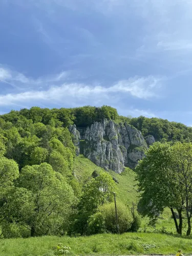 Fagus sylvatica dominating (Common Beech), admixed Abies alba (occasionally as accompanying tree species) (Silver Fir), Carpinus betulus (Hornbeam), Quercus petraea (Sessile Oak), Quercus robur (not rare, but mostly sparsely occuring) (Common Oak), isolated Picea abies (Norway Spruce), Acer platanoides (Field Maple), Acer pseudoplatanus (Field Maple)