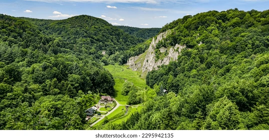 Tall-growing beech or fir-beech cathedral forests with a closed canopy (70-90 %). Shrub layer only weakly developed, and absent in typical stands. The herb layer (60-90 %) has a mosaic structure and consists mainly of short or middle-height, broad-leaved dicotyledon herbs. The moss layer is weakly developed and only in base-poor forms contains some bryophytes.