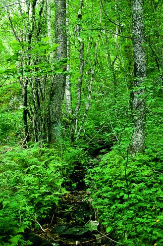 Complex of mixed deciduous forests in which Ulmus glabra, Fraxinus excelsior dominate in the tree layer. The shrub layer is moderately to weakly developed, and often dominated by Corylus avellana. The herb layer is mostly species-rich. On shallow to rocky slopes at higher altitudes in neighbouring biomes there are birch and pine forests.