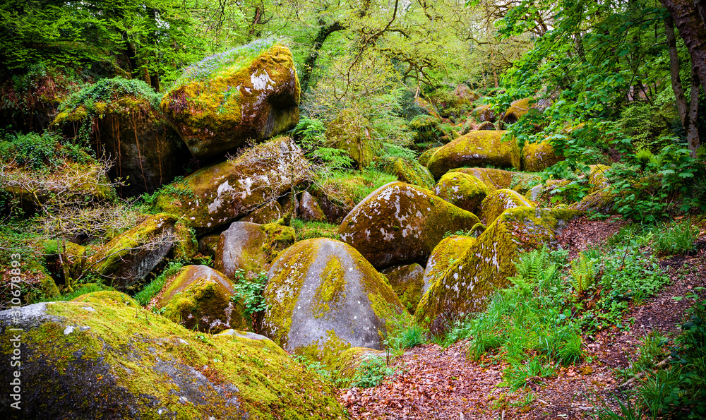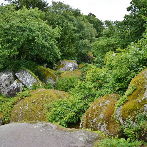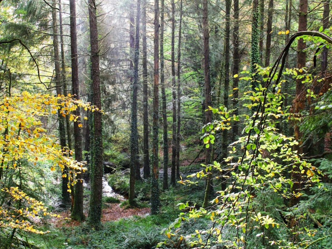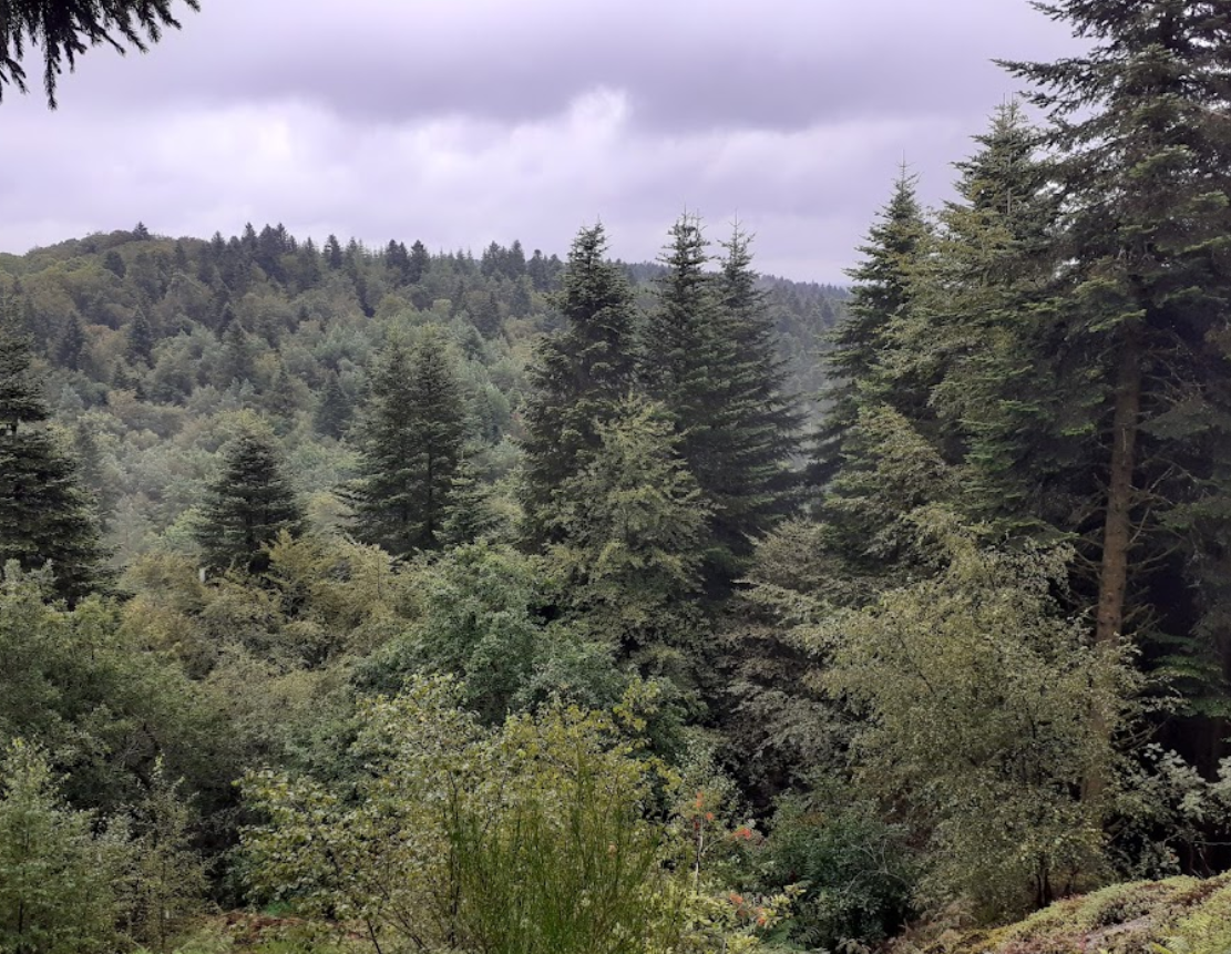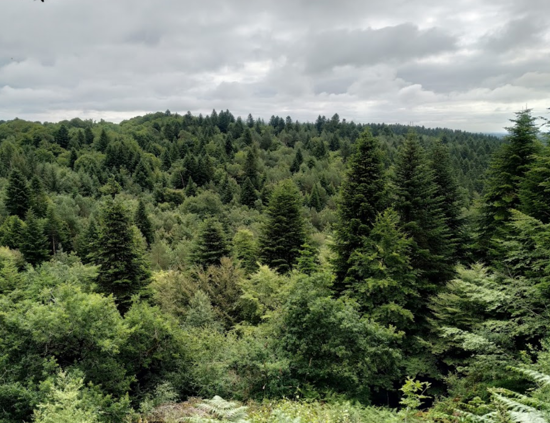 NOTE: The original NVC had beech instead of Scots Pine, but since Eryn Vorn is described as pine and F75 works well in all other respects (including that pine would probably do well here if it weren’t outcompeted by beech), beech has simply been replaced by Scots Pine.Pine-dominated forests with varying proportions of oak. The stands are characterised by a remarkable richness in epiphytes which owes its existence to the moisture and cleanliness of the sea air: Polypodium vulgare, numerous lichen species (6 Usnea, 4 Sorbaria, 2 Parmelia, 2 Sticta species), bryophytes and the liverwort Frullania tamarisci that colonises tree branches (Des Abbayes 1934, 1954). The undergrowth contains numerous evergreen shrub species and lianas, particularly Ilex aquifolium, Taxus baccata, Buxus sempervirens, Ruscus aculeatus and Hedera helix. The herb layer is diversely interwoven.