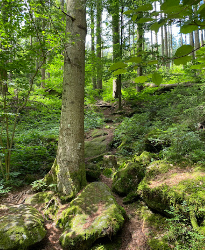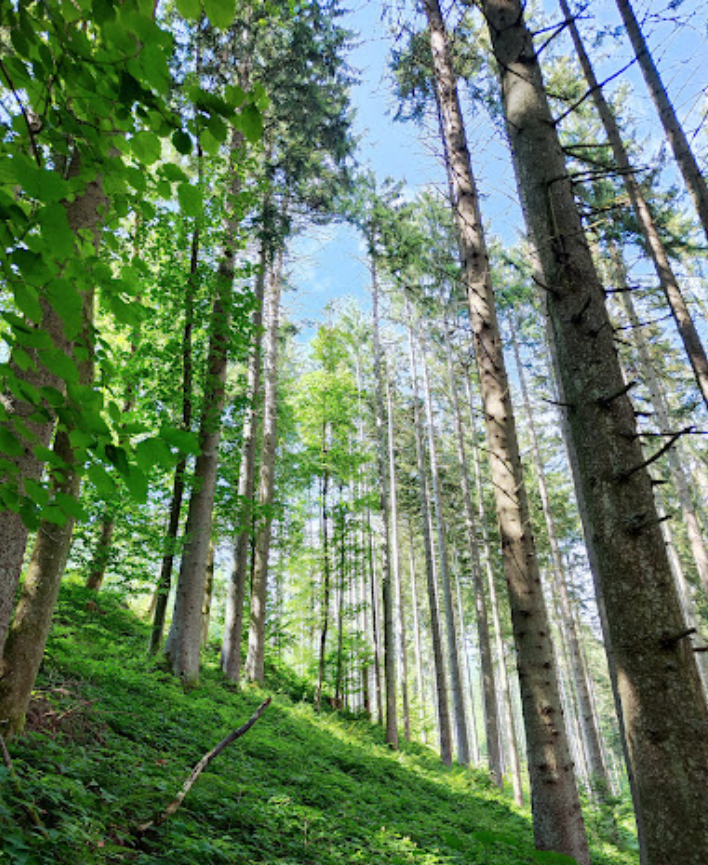 Fagus sylvatica dominating (Common Beech), admixed Quercus petraea (Sessile Oak), Quercus robur (Common Oak), Abies alba (Silver Fir)