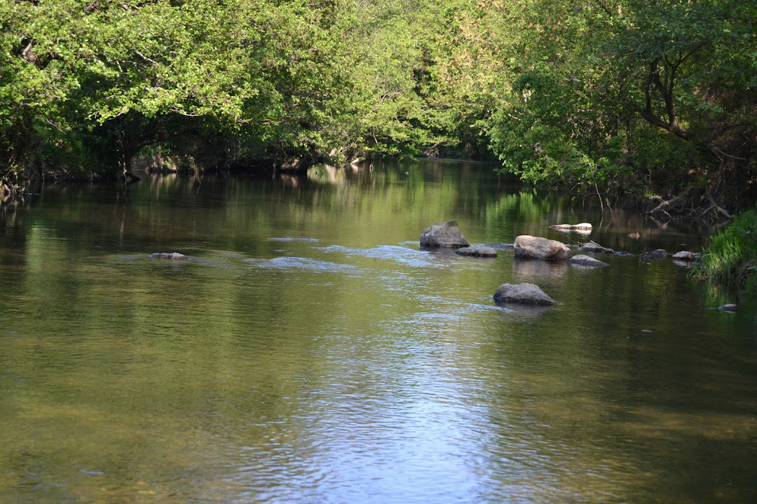 Groundcover (in patches): small_fescue, dandelion, wild_parsley, sweet_woodruff, woodland_sedge, lush_grass, greater_wood_rush, green_meadow_fescue, wood_horsetail; isolated horse_chestnut_tree_sapling, red_clover_flowers, gorse_tree_sapling