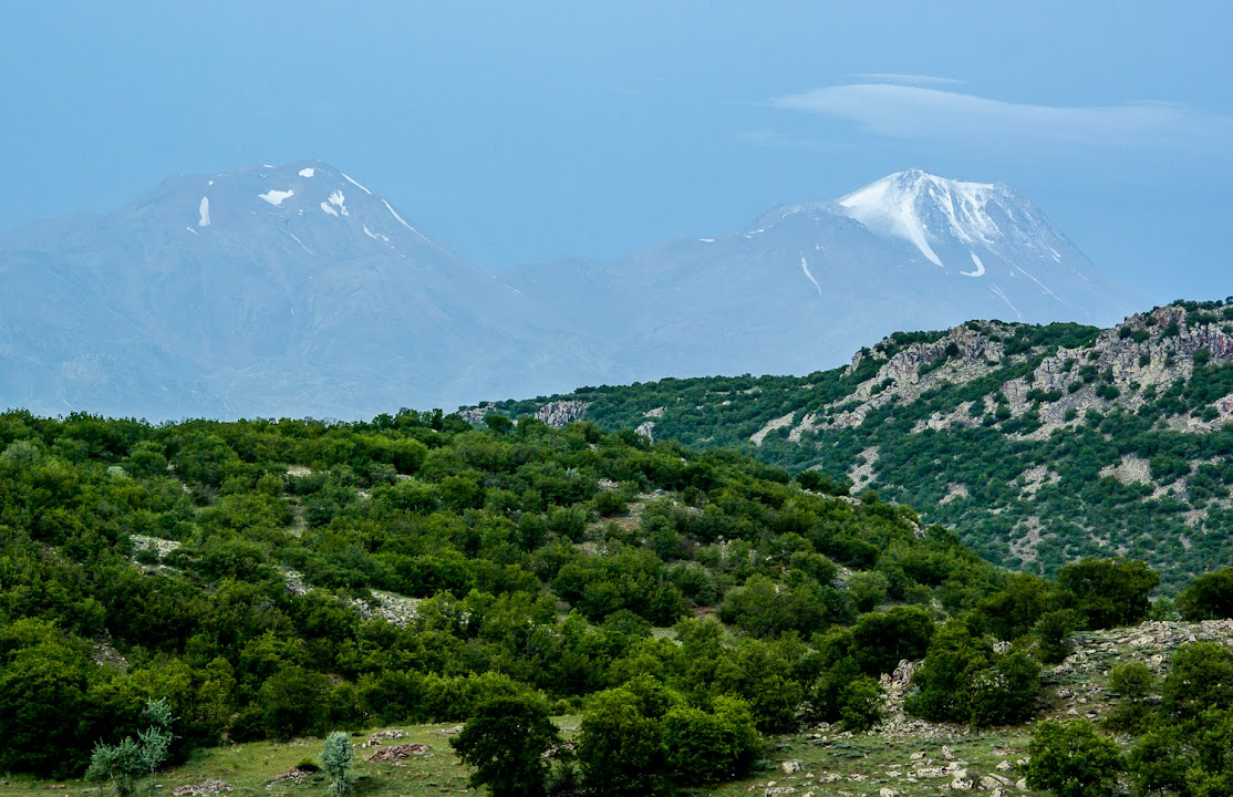 Quercus pubescens (Downy Oak) and Quercus infectoria (Downy Oak Bush) dominate, joined by Pinus nigra (Swiss Pine), Juniperus oxycedrus (Greek Juniper Bush) and Juniperus excelsa (Greek Juniper) at higher altitudes