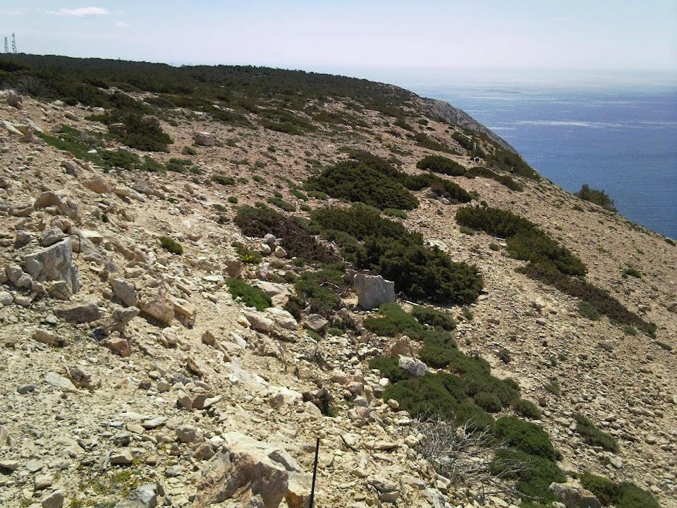Juniperus phoenicea (Greek Juniper (tiny & bush)), Rhamnus lycioides (Olive Bush), Prasium majus (wild_parsley), Myrtus communis (Olive Bush), Euphorbia dendroides (Olive Bush)