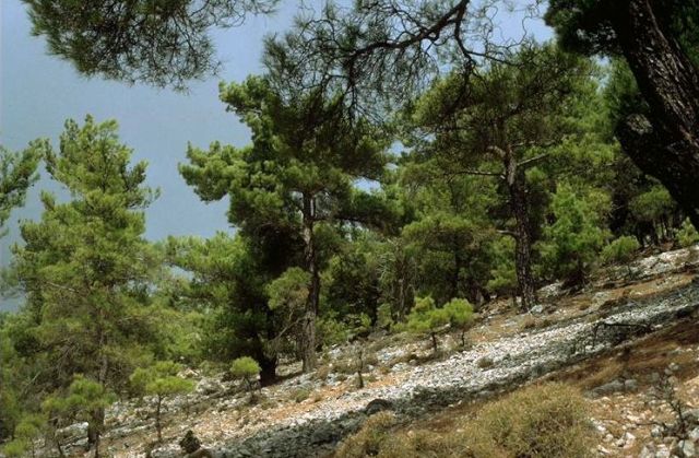 Pinus brutia (Maritime Pine), Cupressus sempervirens (Cypress), Quercus coccifera (Kermes Oak)