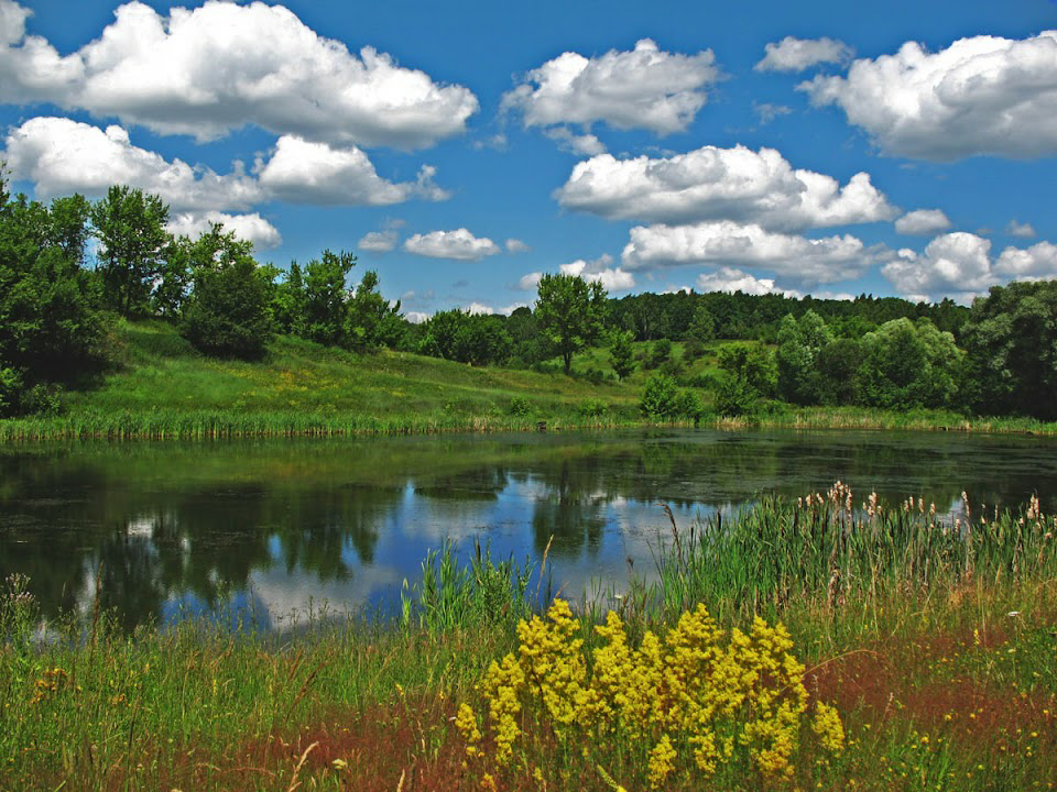 b) three-layered poplar or willow softwood meadows are formed from many willow species in the shrub layer and a colourful herb layer, consisting of grasses and herbs in particular.