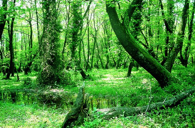 Apennine-Balkanic hardwood alluvial forests (Fraxinus angustifolia s. l., Quercus robur, Quercus pedunculiflora, Ulmus minor, Carpinus betulus) with Leucojum aestivum, Carex pendula, Periploca graeca in combination with alluvial forests (Salix alba, Populus alba, Populus nigra) and oak-hornbeam forests (Carpinus betulus, Quercus robur)